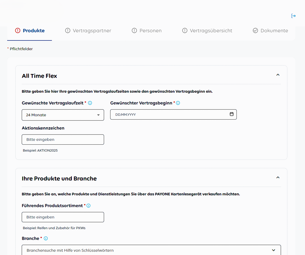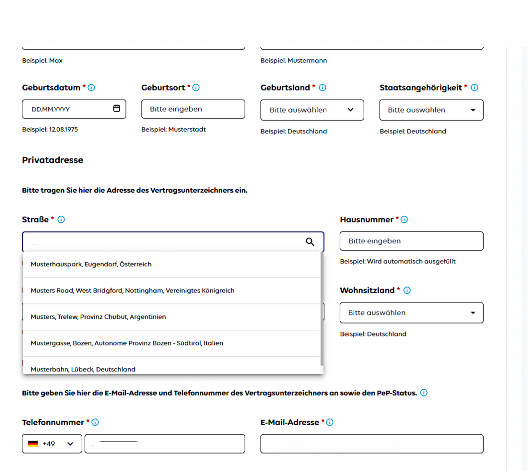 Geführte Eingabe über dynamische Webformulare, automatische Validierung (z.B. Adresse, IBAN).