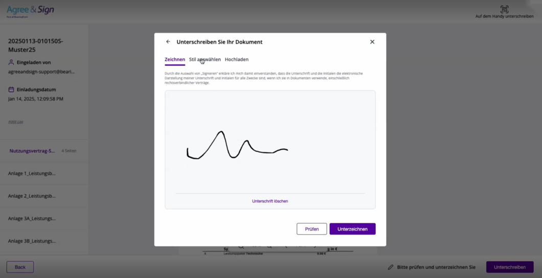 Contract documents are signed digitally and in accordance with eIDAS by authorized signatories directly within the process, ensuring the entire process remains legally compliant and paperless.